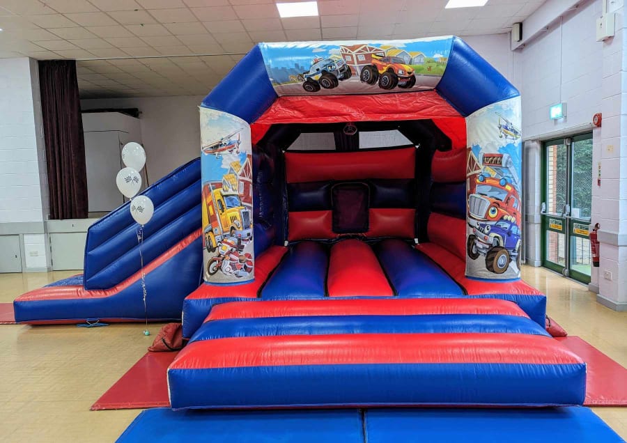 Our Transport Bouncy Castle with Side Slide is available to hire in Luton, Bedford, Milton Keynes, Dunstable, Leighton Buzzard, Sandy, Biggleswade.