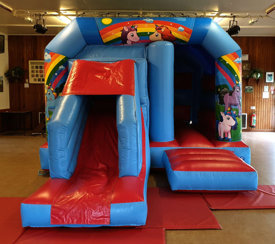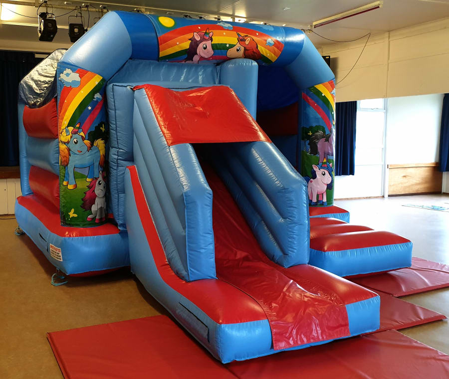 Rainbow Unicorn Bouncy Castle with Front Slide.