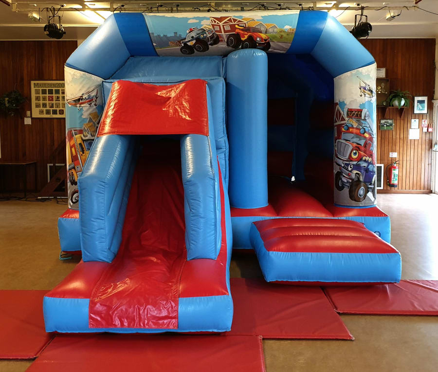 Why not add a speaker and lights system to turn this Transport themed bounce n slide into an amazing Transport themed disco bounce n slide. Please call us on 01525 633331 or Contact for more details.