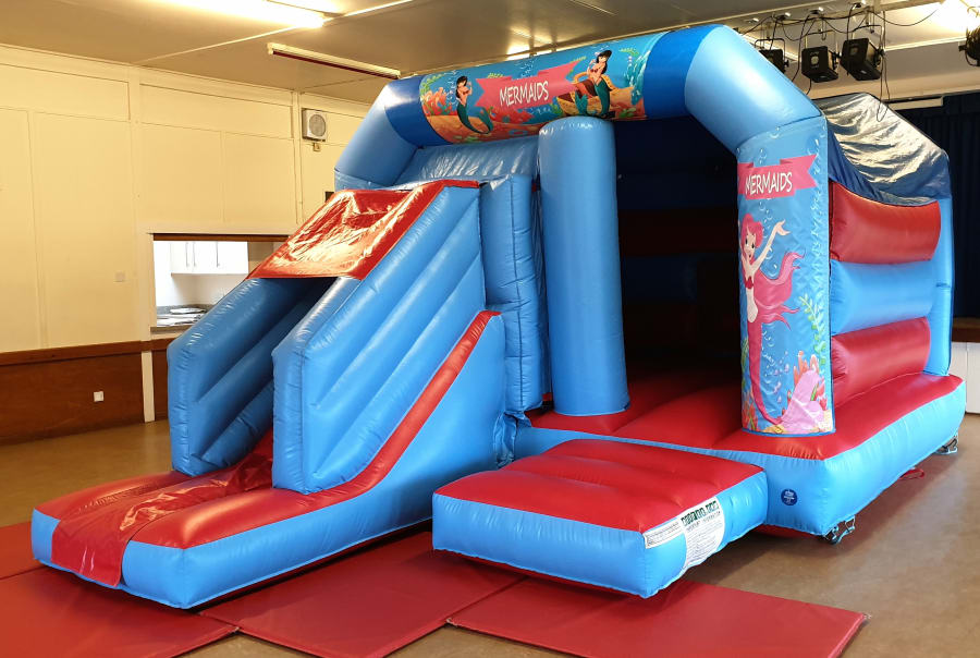 Our Mermaid Bouncy Castle with front slide is available to hire in Luton, Bedford, Milton Keynes, Dunstable, Leighton Buzzard, Sandy, Biggleswade