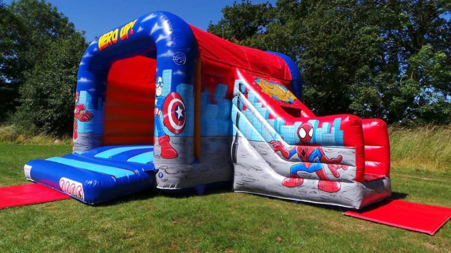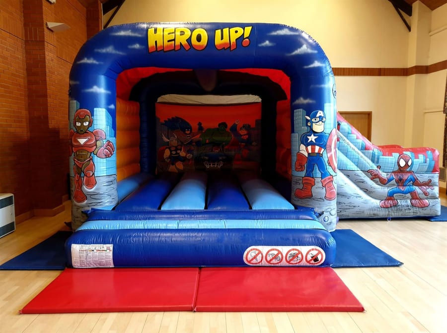 Deluxe Superhero Bouncy Castle with Side Slide Hire