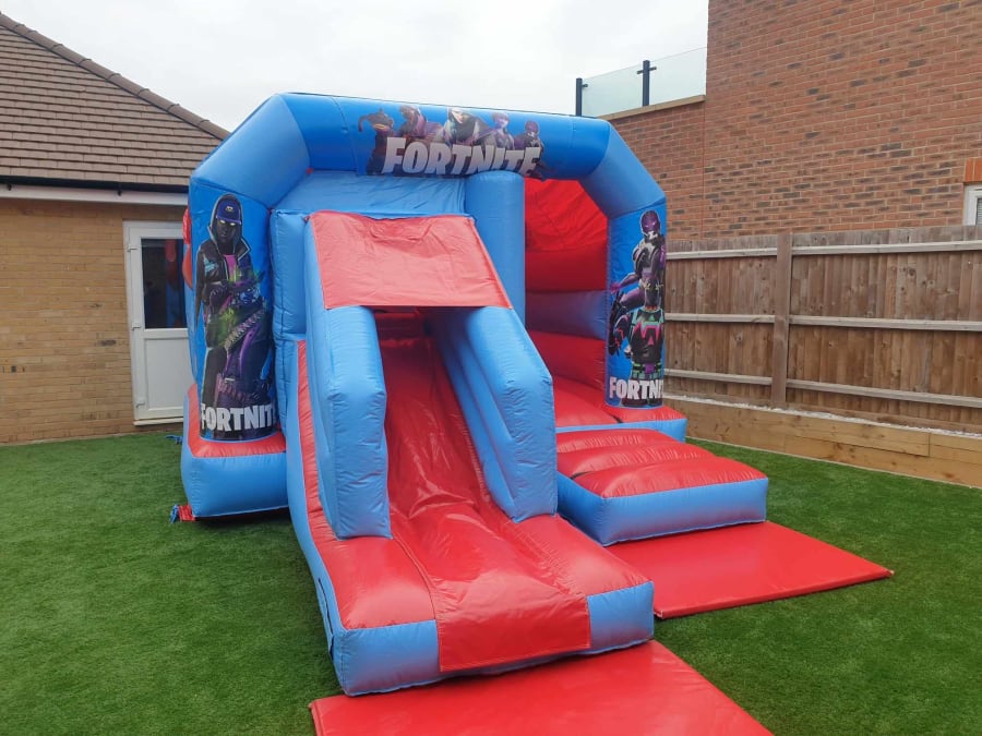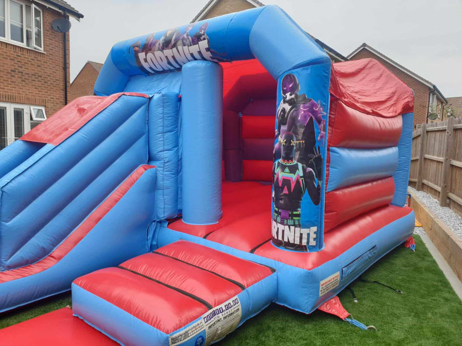 Red/Blue Fortnite Bouncy Castle with Front Slide – The Ultimate Gaming Adventure!