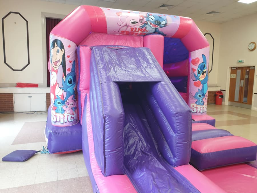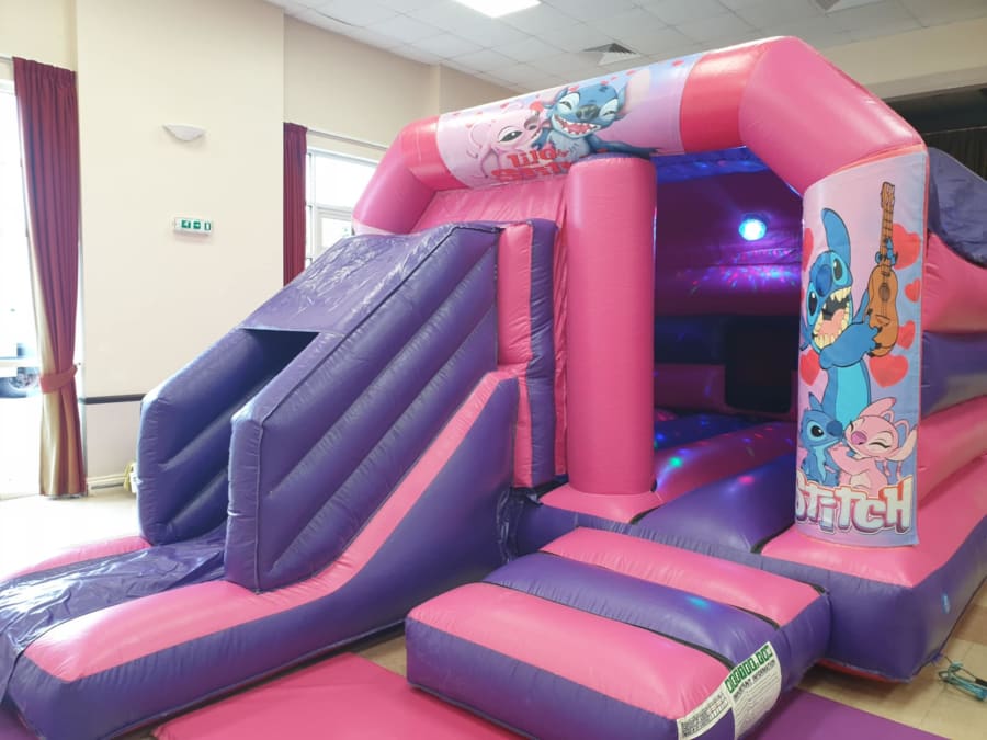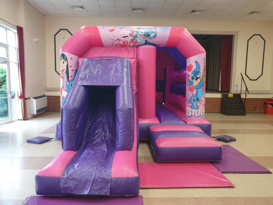 Looking for Bouncy Castle Hire Pink/Purple Lilo & Stitch Bouncy Castle with Front in Milton Keynes, Luton, Bedford, Sandy? You're in the right place — we deliver, set up and make sure everything is safe and sparkly before the little ones jump in.