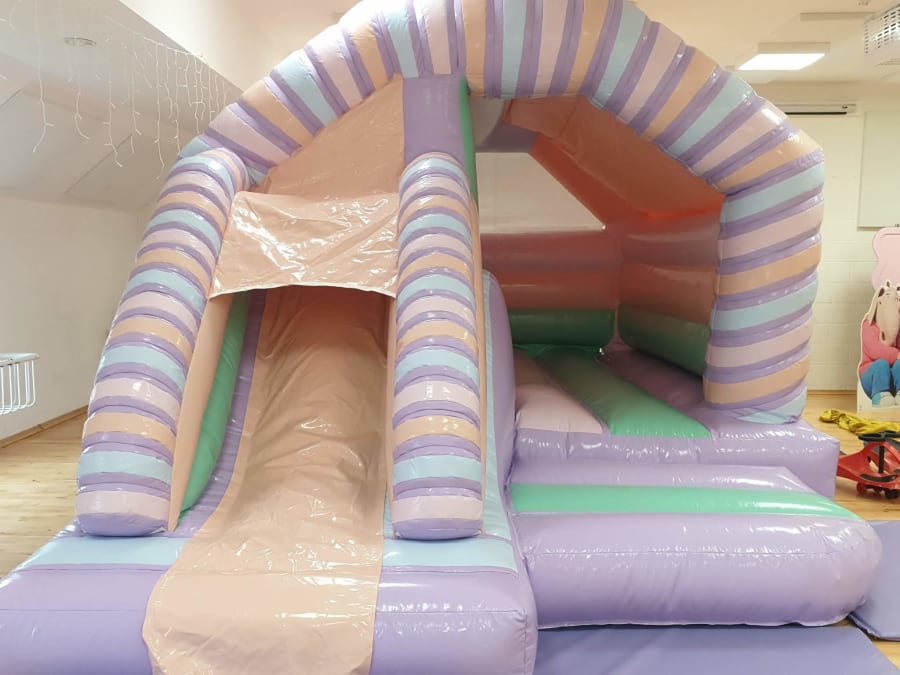 Stand out with pastel colours and a playful twist design that complements themed parties. The added front slide increases activity and keeps kids engaged longer.