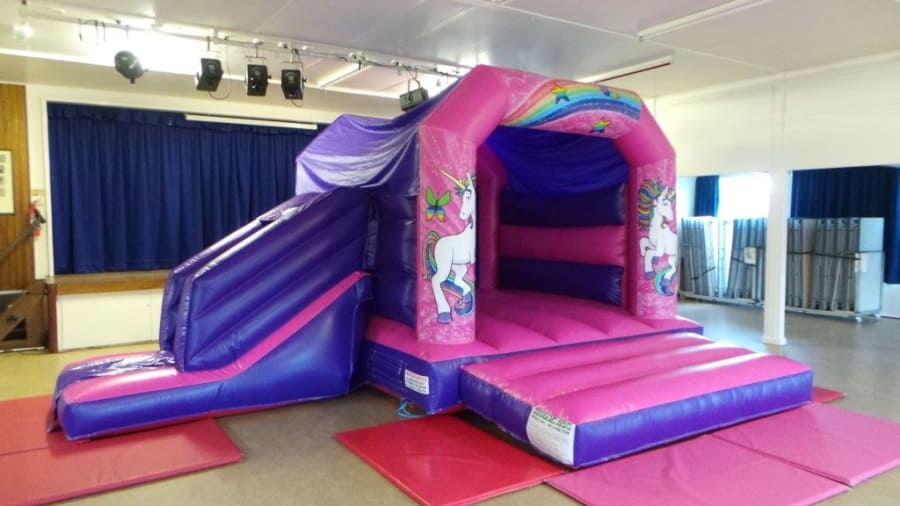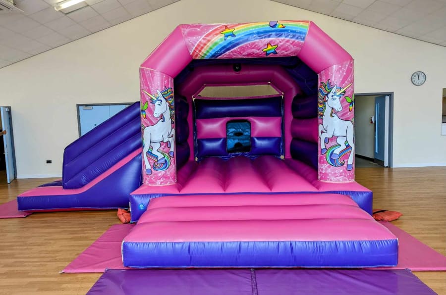 Pink Unicorn Bouncy Castle with Side Slide Hire