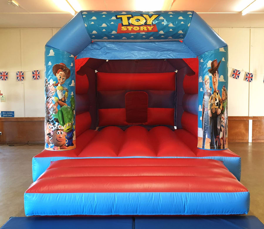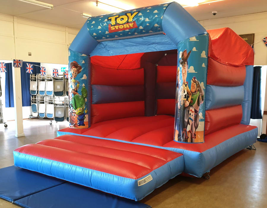 You can add a speaker and light system to transform this bouncy castle into a Toy Story disco castle. With music and lights, it becomes a lively party centrepiece. Call 01525 633331 or use our Contact page for details.