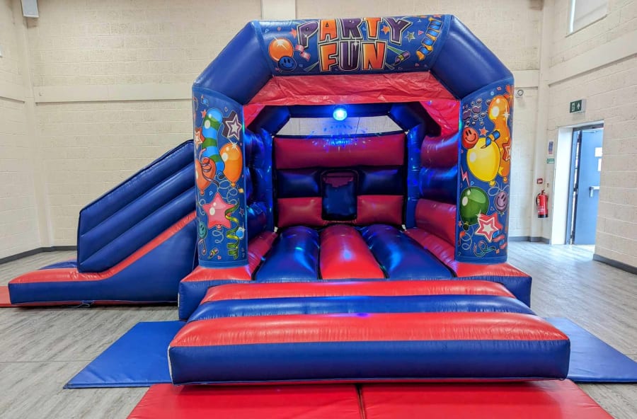 Don't miss out on the fun! Book our Red/Blue Party Disco Bouncy Castle with Side Slide today and create memories that will last a lifetime. Whether you're hosting a small gathering or a large event, this bouncy castle will be the highlight of the party. Get ready to bounce, slide, and dance the day away!