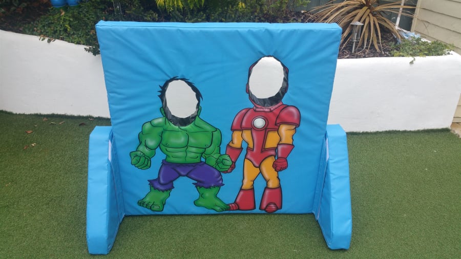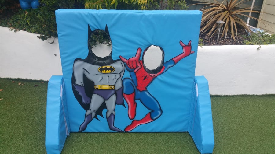 Peep boards are fast becoming very popular to hire along side a bouncy castle or soft play set. This double sided twin hole Superhero themed peep board would be a great addition to any superhero themed party.
