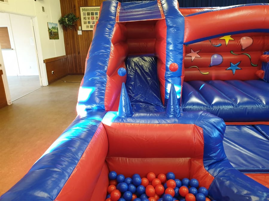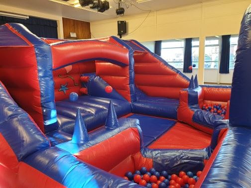 With its neutral red and blue colour scheme and its balloon and stars design, this inflatable multi-activity centre is suitable for all kinds of occasions. It will entertain both boys and girls for hours! It's loaded with plenty of activities that will keep young children playing with each other and socialising in a safe and fun environment; for children's entertainment hire in Bedfordshire and Milton Keynes , this is ideal!