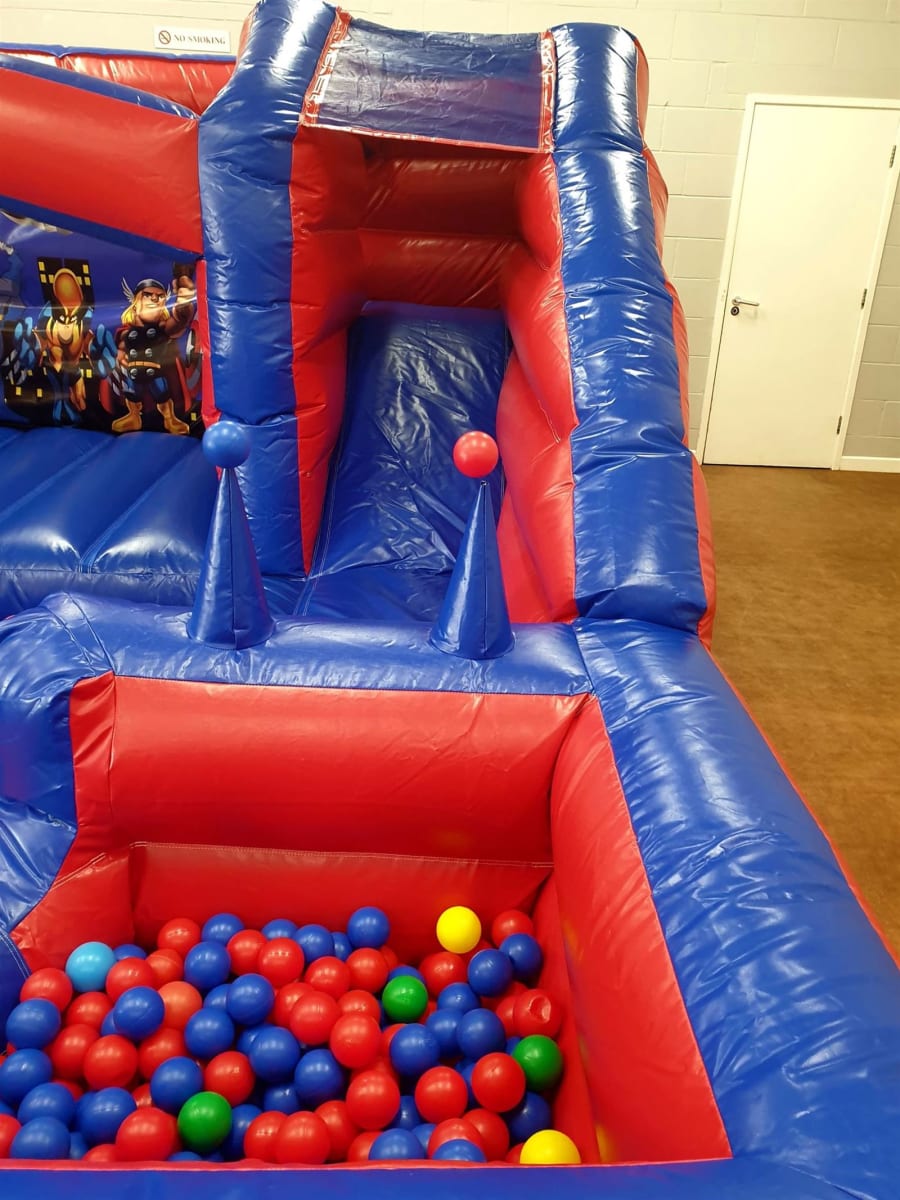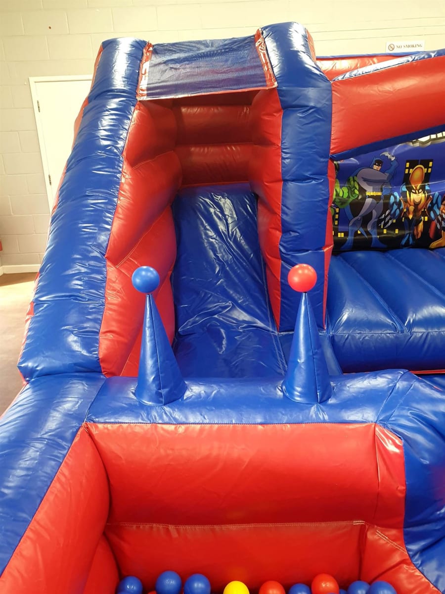 It's a real 'marvel' to look at! You'll appreciate the vibrant images of classic superheroes such as Batman and Superman alongside the wide range of inflatable activities for kids to play with. Kids go through the archway and play among the ball pits, air jugglers and bouncy castle while safely enclosed within the inflatable walls. The children can't get out easily, but parents, guardians and teachers can easily keep an eye on things!
