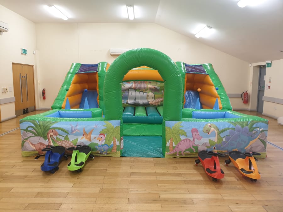 Our new Dinosaur themed play park is sure to be a hit any Dino themed party. This colourful play park has 2 slides, a bouncy castle, 2 ball ponds with air jugglers and also comes with a set of 4 didi cars for that extra bit of fun.