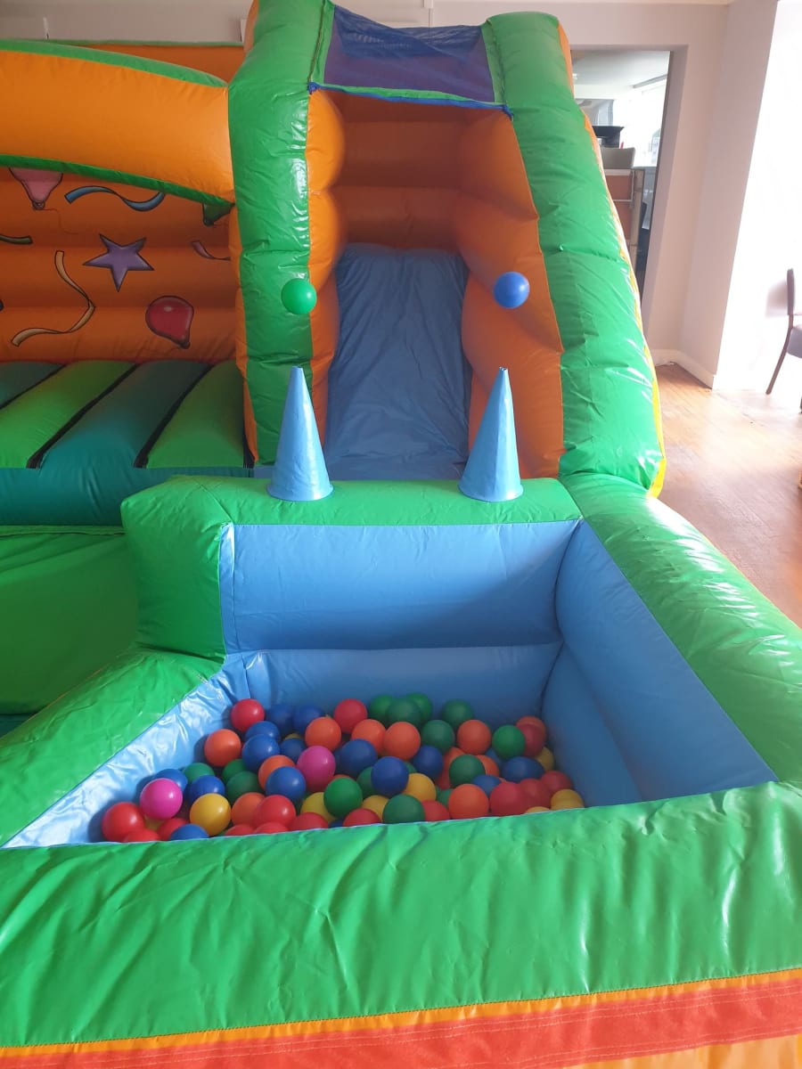 Thanks to its stylish and neutral colour scheme, this orange & green inflatable play park with its understated stars and balloons design is a treat for all kinds of events. Boys and girls alike will love playing in the ball pools, toying with the air jugglers, bouncing on the bouncy castle, racing around on the didi cars and plummeting down the inflatable slide. It's sure to keep young children entertained for the duration of the event, no matter the occasion.