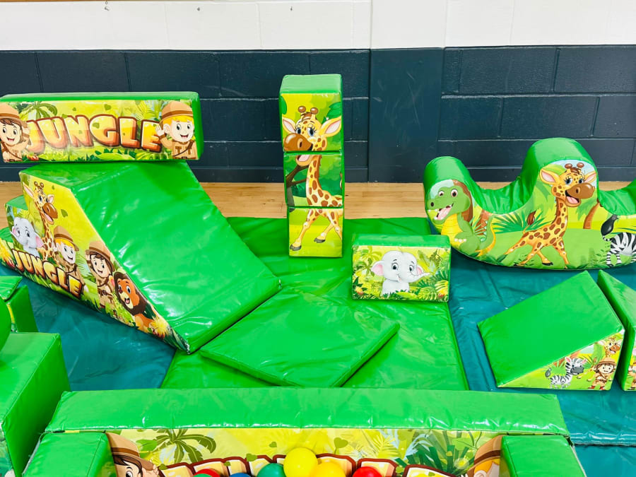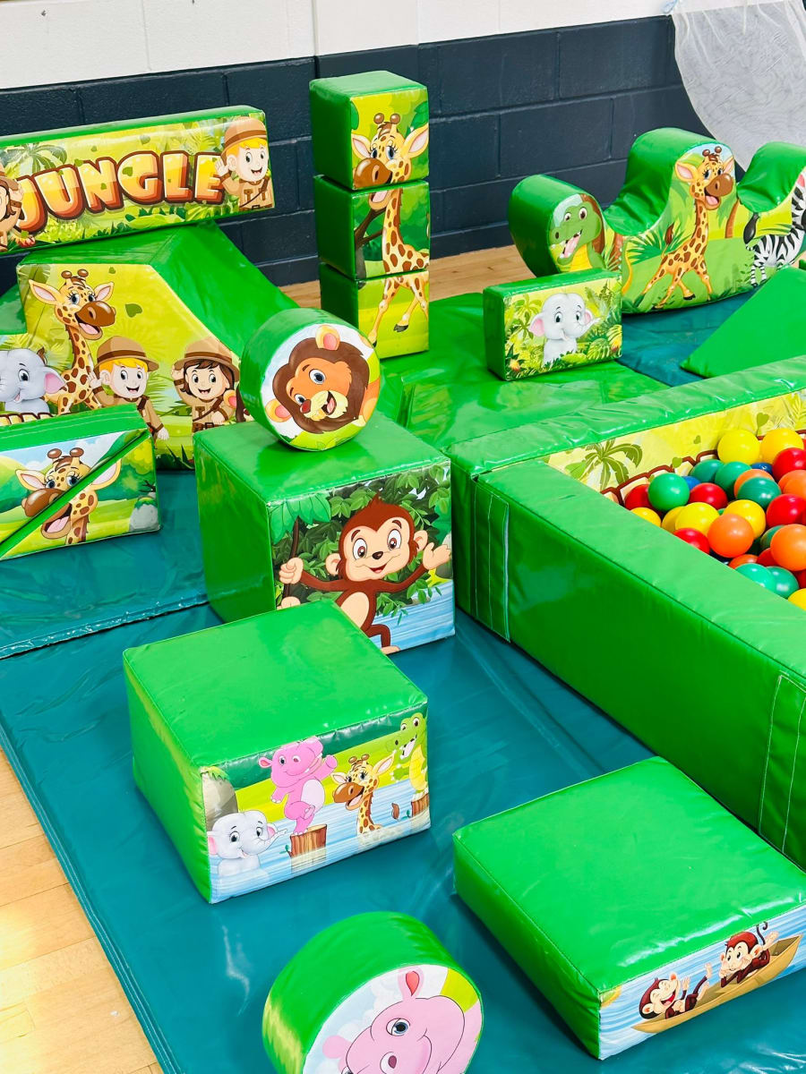 All this is set up on 2inch thick commercial soft play mats and not the cheap foam tiles.