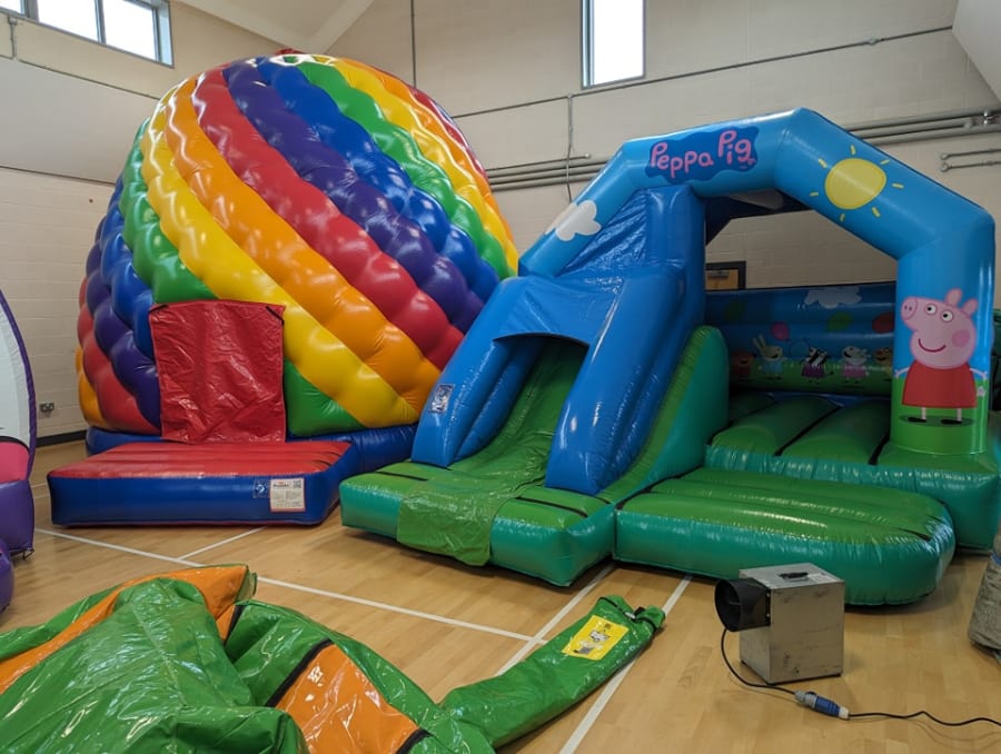 Please check the size of your space before booking. You’ll find all dimensions listed on each product page. We may ask for a photo of your garden or hall to make sure the inflatable will fit.