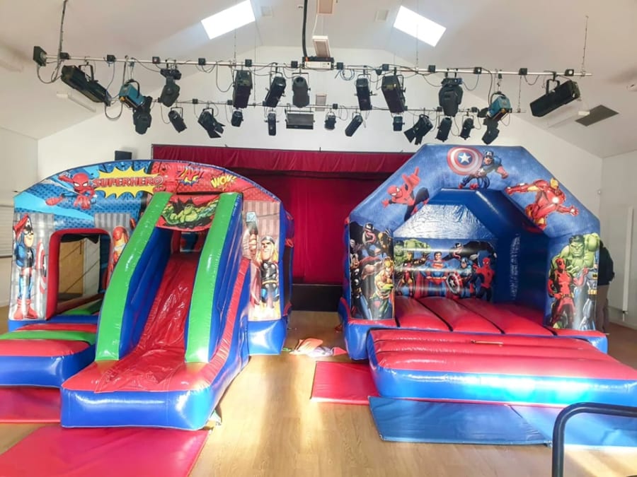 The Pink & Purple Disco Bouncy Castle is one of our most frequently hired disco inflatables, while the Pink Disco Bouncy Castle with Side Slide offers a little more variety in layout. For something big and bold, the Twister Disco Dome Bouncy Castle creates an immersive, music-filled experience and is especially popular for hall-based celebrations in Sandy. And for superhero fans, the Superhero Disco Bouncy Castle with Front Slide adds lights and music to an already exciting theme.